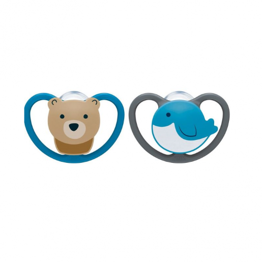 Chupeta anatómica em silicone, que acalma e contribui para o desenvolvimento global saudável do bebé. Recomendada para bebés dos 18 aos 36 meses.